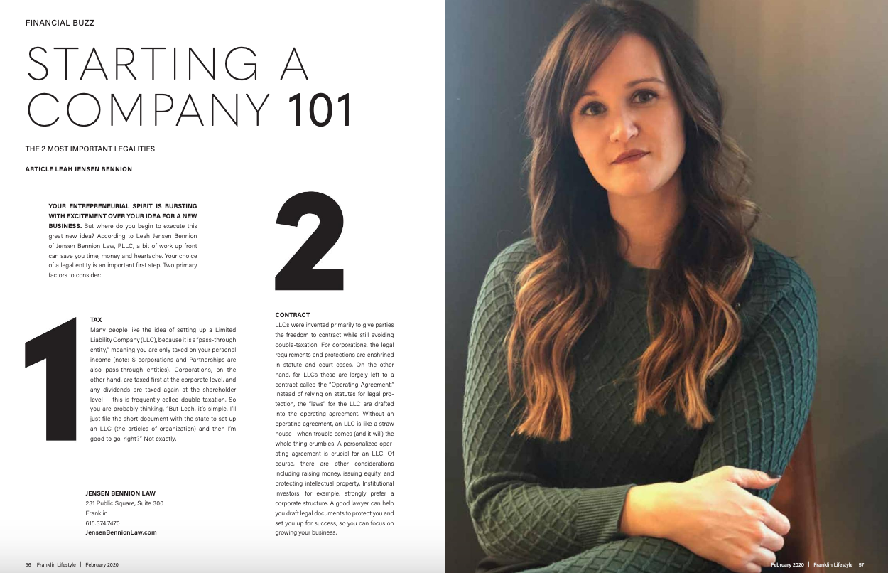 Starting Your Company 101 Check out our recent article in the February issue ofd Franklin Lifestyle Magazine. Leah Jensen BennionFebruary 5, 2020Startup, business, Women-owned businesses, entrepreneur, tax Facebook0 Twitter 0 Likes